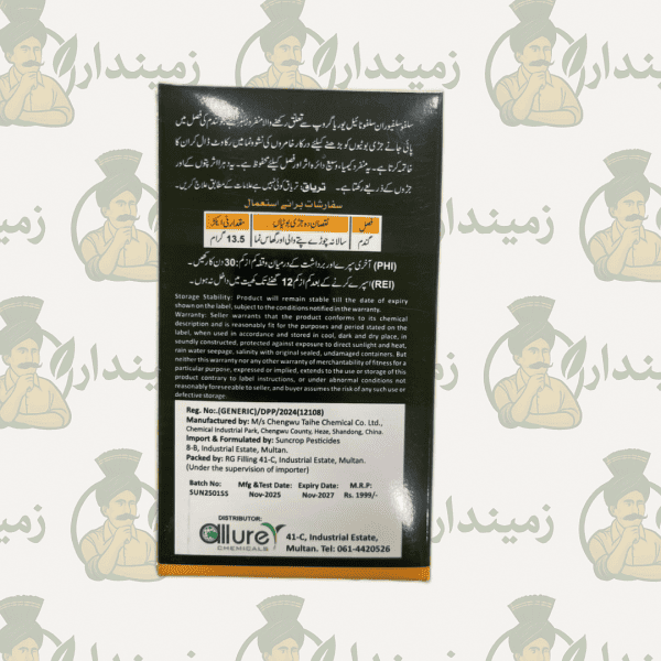 Sulfo Sulfuron 75% WG by Allure Chemicals is a high-quality sulfur-based fungicide formulated in Water Dispersible Granules (WG). It provides effective protection against common fungal diseases while supplying essential sulfur required for healthy crop growth.